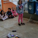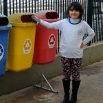 Retomamos a importância da reciclagem para o Meio Ambiente e focamos como fazer isso no dia a dia, em casa e na escola. Fomos até o pátio da escola e analisamos cada lixeira, sua cor e material correspondente. Em seguida, fizemos uma classificação de materiais, dando o destino correto em cada lixeira. Cada criança escolhia um objeto e falava qual a lixeira correta para jogá-lo de acordo com o tipo de material.