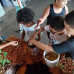 Os alunos tiveram noções sobre a compostagem através de um método bem simples que é o vaso compositor. Eles aprenderam como confeccionar os vasos, que materiais precisam ser utilizados e como mantê-los para obter um produto viável que poderá ser usado em vasos de flores e até em hortas, nas suas casas, na escola e instituições.