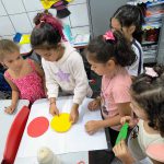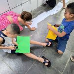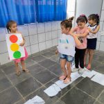A professora Sara, do 1º Ano B, desenvolveu uma atividade lúdica e educativa em alusão ao movimento Maio Amarelo, com foco na conscientização sobre a segurança no trânsito. Durante a proposta, os alunos confeccionaram um semáforo utilizando materiais simples e coloridos, aprendendo sobre o significado das cores e sua importância na organização do tráfego. Em seguida, participaram de uma simulação de travessia nas ruas, onde puderam praticar atitudes seguras como olhar para os dois lados, respeitar o semáforo e caminhar na faixa de pedestres. A atividade promoveu a vivência prática de valores como atenção, respeito e responsabilidade no trânsito.