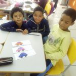 Trabalhamos algumas placas de trânsito que fazem parte do dia a dia dos alunos e as cores do semáforo. Aproveitando “o vídeo Turma da Mônica em ‘Educação no trânsito”, também usamos as personagens para colorir e associar às cores do semáforo.