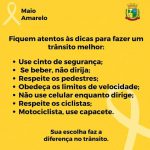 No mês de maio com intenção de chamar a atenção da sociedade para o alto índice de mortes e feridos no trânsito existe o “maio amarelo”, onde desenvolvemos ações de conscientização e respeito no trânsito.
