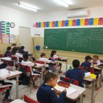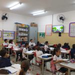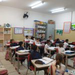Após ouvirem, cantaram e escreveram a música no caderno.