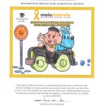 Primeira parte da atividade sobre o Maio Amarelo. Nesta primeira etapa as crianças levaram para casa essa folha para que pintassem e depois os pais assinassem para autorizarem a veiculação de suas imagens pela escola.
