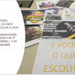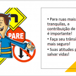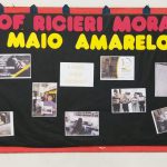 Para comemorar o Maio Amarelo, o professor de Português trabalhou o tema em sala de aula com seus alunos e eles produziram alguns slides com base nas fotos e no slogan da Campanha de 2023. Algumas produções foram expostas no painel da escola.
