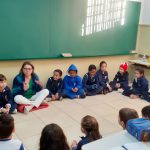 Iniciamos a aula com a roda de conversa, onde os alunos puderam expor seus conhecimentos e vivências sobre o trânsito. Como por exemplo: o que vocês entendem sobre trânsito? Quando falamos de trânsito, o que vocês pensam?