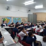 Os alunos assistiram aos vídeos e após conversamos sobre questões relacionadas ao tema do Maio Amarelo e como devemos agir no trânsito como pedestres, ciclistas e nossos pais, os motoristas.