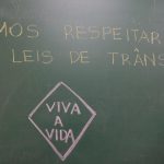 Toda aula tem como início uma conversa sobre o que é correto e incorreto de fazer. Foi colocada uma frase na lousa para completar a discussão com a placa VIVA A VIDA em que os alunos se colocaram sobre esse aviso e desenharam.