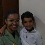 A professora Maria Benedita do primeiro ano do fundamental, também participou com seus alunos do trabalho proposto de pintar um desenho e tirar uma selfie com seus pais.
