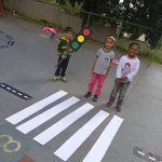Atividade de circuito para consientizar a importância de obedecer as regras de trânsito, respeito entre motoristas e pedestres.