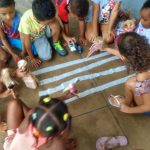 A  atividade foi apresentada e realizada de forma lúdica. A faixa horizontal é muito importante para os pedestres do nosso bairro que é cercado pela BR 101, sem passarela,  que infelizmente a maioria dos motoristas não respeitam a faixa de pedestres.