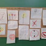 Em casa os alunos pesquisaram algumas placas e seus significados, depois, desenharam as placas e escreveram seus significados.