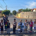 Fizemos um pedágio em frente a nossa escola, com cartazes informativos e algumas demonstrações de placas importantes para a segurança no trânsito e entregamos alguns panfletos com “Regras de segurança no trânsito”.