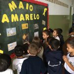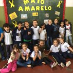 No mês de Maio a partir do slogan MAIO AMARELO, os alunos do 1º ano, da EMEB Prof. Maria Izabel Mota Ferreira, no primeiro momento falamos sobre transito e em seguida sobre seus perigos e cuidados que devemos ter como pedestres e os pais como condutores de veículos. Em seguida observamos o painel feito com diversos panfletos sobre o MAIO AMARELO.