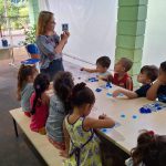 Para a marcação na cartela utilizamos tampinhas de garrafa pet que são trazidas pelos nossos alunos para a reciclagem ♻️