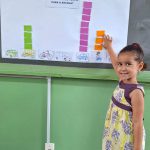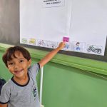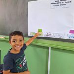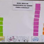Os alunos realizaram junto com a professora um gráfico onde colocaram o meio de transporte que eles vêm para a escola.
