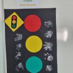 Nessa atividade o professor ensinou seus alunos as cores do semáforo e o significado de cada cor no trânsito de forma lúdica.