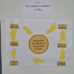Nessa atividade a professora utilizou algumas frases sobre respeito no trânsito e utilizou os pés dos alunos para decorar o cartaz.