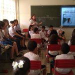 - Leitura (para outra sala) interpretativa da HQ pelos alunos que manifestaram interesse e se dividiram para representar os personagens e as onomatopeias da história.