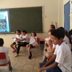 - Leitura de Histórias em quadrinhos da plataforma Arteris coletiva no projetor da sala;