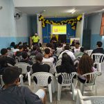 A palestra foi realizada no turno matutino, para alunos do 6º ano, 7º ano e 8º ano.