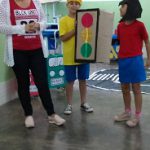 Passamos para os alunos os vídeos disponibilizados após nossa Capacitação, sobre o trânsito em alguns lugares do mundo, e falamos sobre os índices anuais de mortes causados pelo trânsito no Brasil. Lembramos dos acessórios de segurança necessários nos automóveis.
