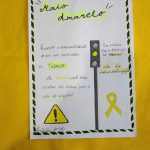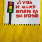 Os alunos do 9º ano D, da Escola Municipal Professora Maria Evani Gomes Teles, de Três Corações – MG, fizeram desenhos e frases sobre o Maio Amarelo, em sala de aula, após uma discussão sobre o tema.