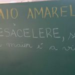 Depois, foi colocada a seguinte frase na lousa ” Desacelere, seu bem maior é a vida”. A frase está exposta em outdoor e faixas espalhadas pela cidade.