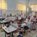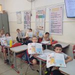 Iniciamos conversando sobre o que é o projeto Maio Amarelo, vimos vídeos e realizamos a análise de cartazes trazidos pelo livro didático.