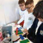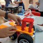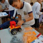 Em robótica, em grupo, os alunos montaram dois projetos: um trator e um semáforo. Depois de concluídos os projetos, os alunos colocaram em prática o que aprenderam sobre como respeitar o TRÂNSITO.