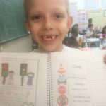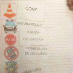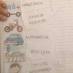 Em um segundo momento, a professora propôs uma atividade em que as crianças teriam que identificar os símbolos do trânsito. Depois desse momento de relato da funcionalidade dos mesmos, as crianças realizaram um jogo da memória da imagem e respectiva palavra. Após o término do jogo, realizaram a colagem das respectivas peças no caderno.