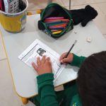 Os alunos receberam um poema, leram, circularam as palavras chaves, discutiram o poema, e pintaram o desenho.