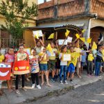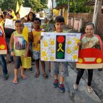 Seguindo essa linha, as professores Marlem e Cassiane uniram suas turmas e saíram pelas ruas como uma verdadeira onda amarela, chamando a atenção de todos sobre como é possível construir um trânsito sem acidentes. Os alunos fizeram cartazes e  com apitos e bandeiras formaram um pelotão de apoio ao Movimento Maio Amarelo.