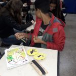 Aproveitando os conteúdos da disciplina de artes móbile de Alexandre Calder, foi trabalhado a conscientização das placas amarelas como placas de atenção e confeccionaram o mobile com CDs, desenhos e pinturas das placas amarelas. Foi feito a exposição no pátio da Escola.