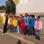 Atividade envolvendo conscientização no trânsito, turma do 2º ano. Os alunos após a professora falar sobre o tema, realizaram uma atividade extra classe nos arredores da escola para conhecer placas existentes e sua finalidade.