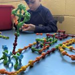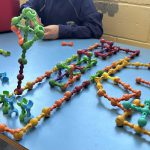 Com peças lego, os alunos montaram cidades, meios de transporte e placas.
