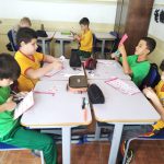 Após, os alunos realizaram atividades impressas da Plataforma Arteris, Projeto Escola e assistiram um vídeo interativo.