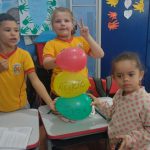 Propus a resolverem atividades de caça palavras, ler e completar frases, criar um semáforo utilizando balões em trios, uma cor para cada um e apresentação do trabalho explicando o que cada cor representa dando orientação aos colegas para o trânsito.