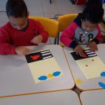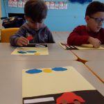Após os alunos receberam vários recortes,  exploraram as peças e por fim fizeram a colagem, completando com desenhos.
