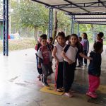 As crianças formaram uma roda animada e, ao sinal da professora, começaram a se movimentar de acordo com a ficha colorida que era mostrada. Foi uma explosão de risadas e aprendizado! Elas praticaram o controle do corpo, a atenção aos sinais e a importância de seguir as regras, tudo isso em um ambiente seguro e divertido. Em seguida, algumas crianças foram convidadas a serem os comandantes das cores.