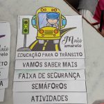 A aula teve início com uma roda de conversa, na qual os alunos compartilharam experiências vividas no trânsito, como atravessar a rua, andar de bicicleta e passear de carro. A partir dessas falas, foi apresentado o movimento Maio Amarelo e explicado o seu significado, destacando a importância de cuidar da vida e respeitar as regras de trânsito.