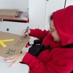 Em seguida, todos tiveram a ideia de confeccionar cartazes a respeito.