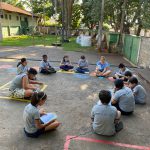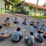 Foi distribuída aos alunos em roda a apreciação da revista e posteriormente a leitura compartilhada que proporcionou questionamentos sobre o tema.
