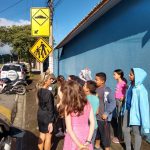 Na sequência, os alunos brincaram em uma atividade na plataforma EduConecte com uma Trilha de Aprendizagem sobre o trânsito. Na atividade eles tinhas vários tipos de jogos, como Forca, Jogo da Memória e etc. para percorrerem. Também fizemos uma caminha da pelo entorno da escola com o objetivo de ver, discutir e conhecer melhor as placas de sinalização que estão pelos arredores da escola.