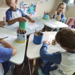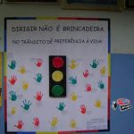 A turma do infantil 5° A, A professora durante as aulas mostrou através de atividades impressas e rodas de conversa a importância de ser um pedestre consciente, que desde pequenos devem aprender para garantir a própria segurança e evitar os riscos no dia a dia, os pedestres devem cumprir responsabilidades e confeccionaram um semáforo no qual cada aluno contribuiu com pintura, colagem ou dobradura, na sequência foi realizado uma atividade pratica explicando a importância do semáforo e os significados das cores. Simularam na sala de aula e depois na rua em frente da escola, durante a aula a professora explicou que o sinal vermelho indica parada obrigatória.