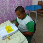 Ele após o recreio fica na biblioteca com o cuidador José Paulo e lá desenvolve atividades diversas, no mês de maio participou da caminhada e também de algumas atividades alusivas ao tema.
