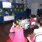 Para dar início, os professores Anderson e Cleia passaram vídeos explicativos e discutiram com as crianças a conduta de motoristas em várias partes do mundo comparando as condições de trânsito destes com a nossa realidade. As crianças puderam se posicionar e muitas contaram acontecimentos vivenciados ou assistidos por elas envolvendo situações positivas e/ou negativas ocorridas nas vias e rodovias. Foi um momento de muita troca de aprendizado!!