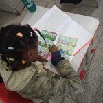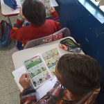 Alguns alunos realizaram a leitura de cada fala dos personagens. Eles foram atentos e seguiram com atenção cada momento destas falas dos personagens. Além da mensagem educativa, os alunos se divertiram com a história em quadrinhos.