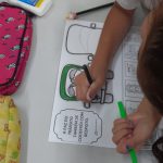 Os alunos do primeiro ano também participaram da educação sobre o trânsito no mês de maio ‘ Maio Amarelo’. Eles fizeram atividades relacionadas, após a professora explanar e explicar sobre os cuidados no trânsito.