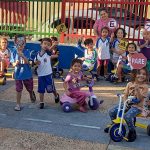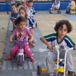 Finalizar com o circuito na pista da escolinha com triciclos, lembrando-os em observar as placas de trânsito .