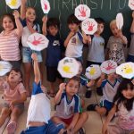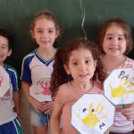 Confecção de placas com carimbo da mãozinha.